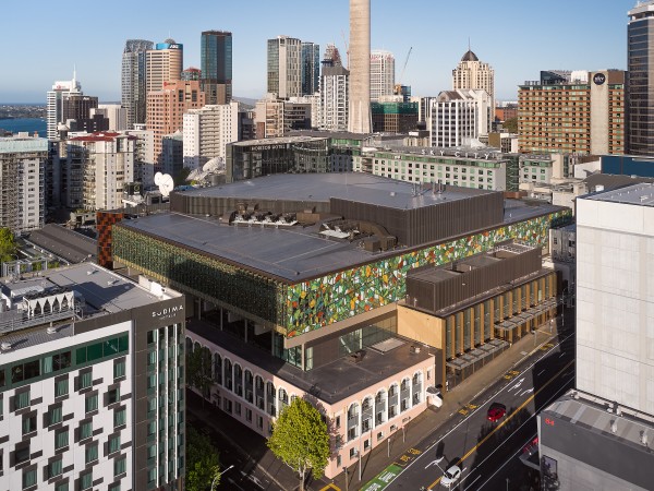 The building itself is stacked vertically and makes maximum use of the entire site. This imposing heft, along with the ever-present backdrop of the Sky Tower, demanded a design that would both capture passers-by attention and inspire visitors. Warren & Mahoney architects achieved that by bringing the landscape and culture of New Zealand together. This includes the extensive use of Solaris louvres, used to both hide building elements and to act as a backdrop that allows artistic elements of the facade to take centre stage.
